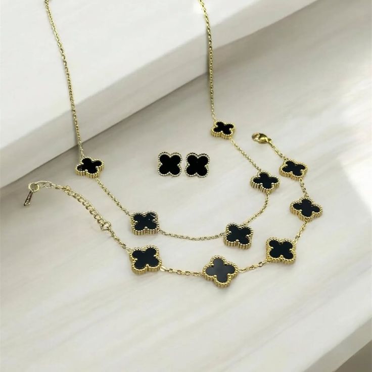 Be the first to review “5 Clover Jewellery Set Black (18k Gold Plated)”