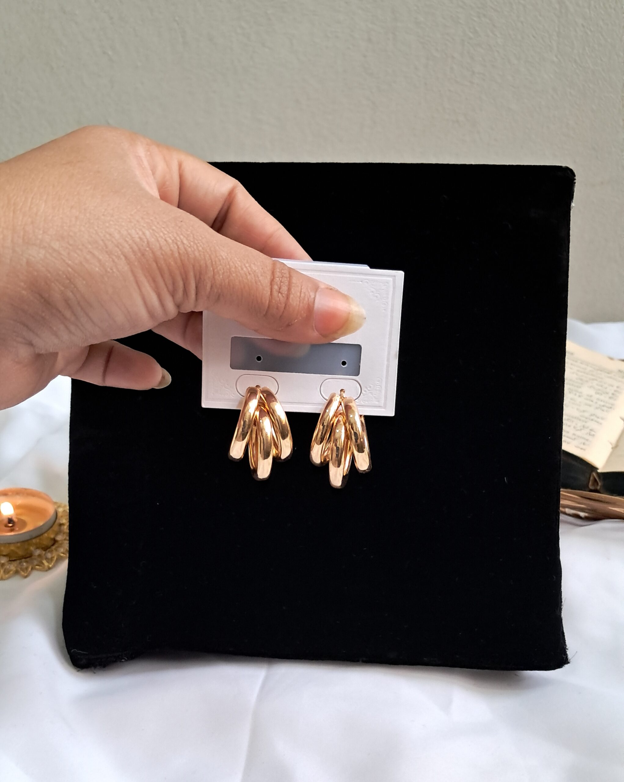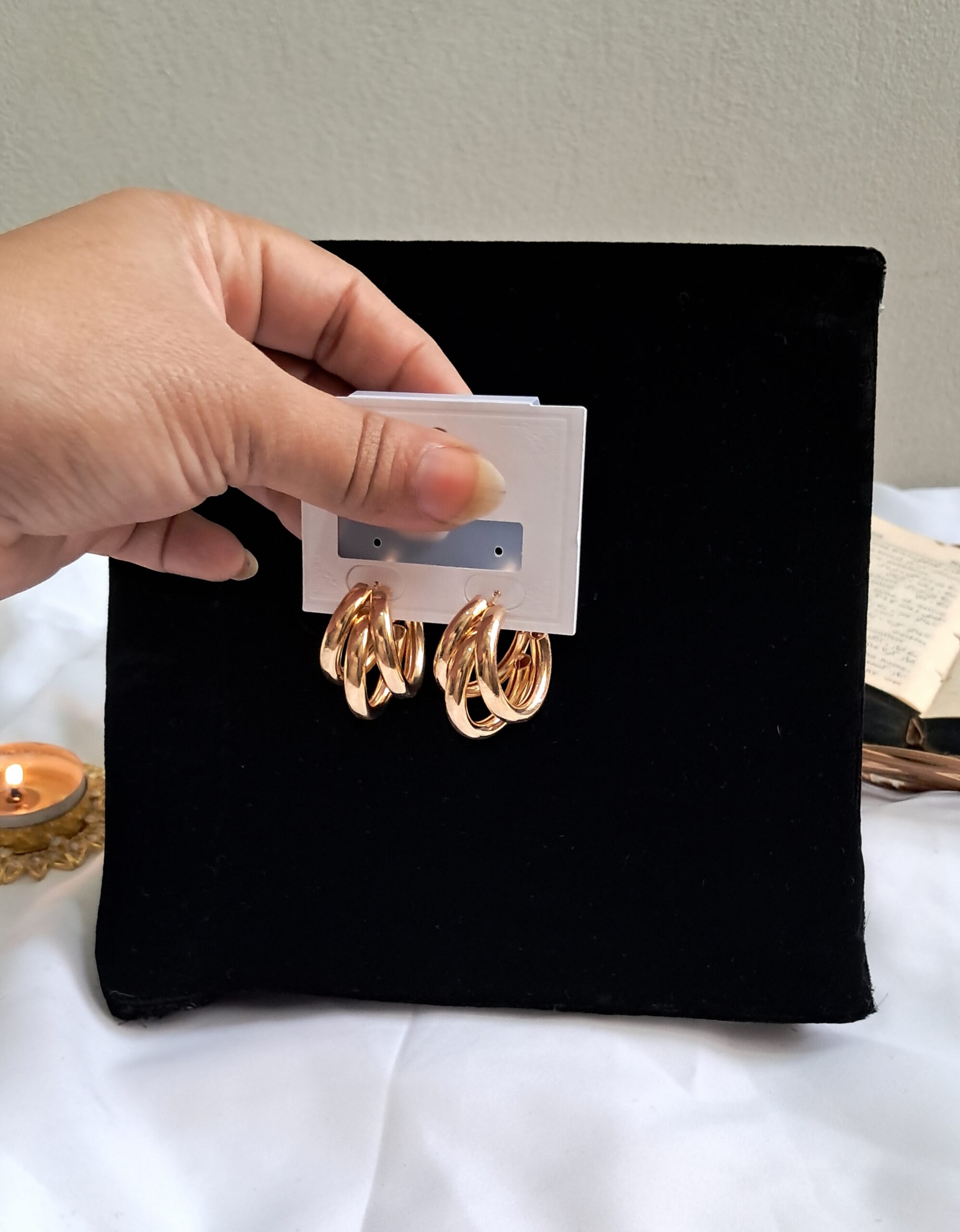 The Golden Tri-Circle Hoop Earrings are designed for contemporary style lovers who want to make a statement. Featuring three interconnected hoops with a smooth golden finish, these earrings bring sophistication, shine, and versatility to your look.