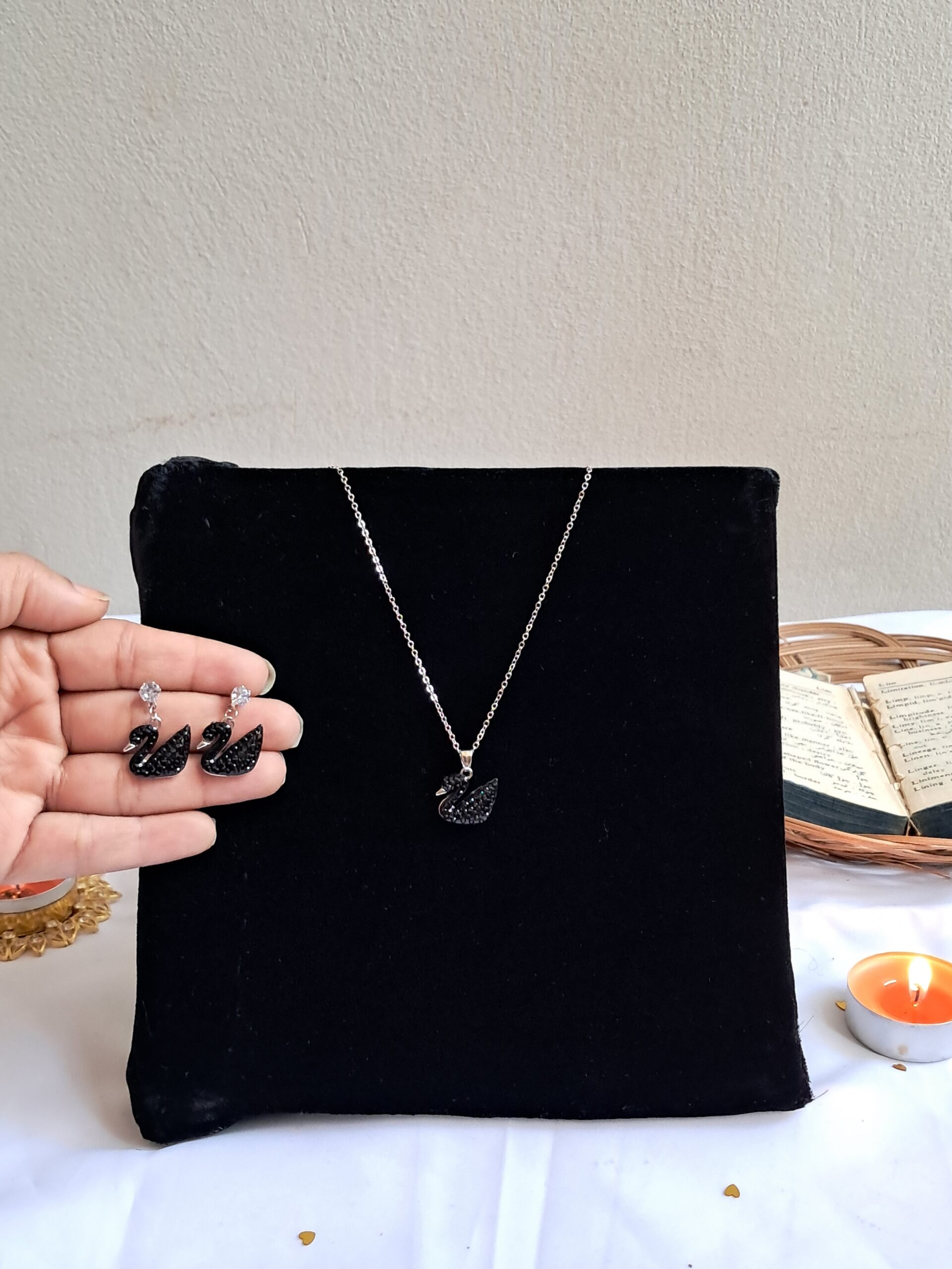 The Black Crystal Swan Set is designed to add timeless grace and refined beauty to your look. Inspired by the elegance of a swan, this set features shimmering black crystals that create a bold yet feminine statement.