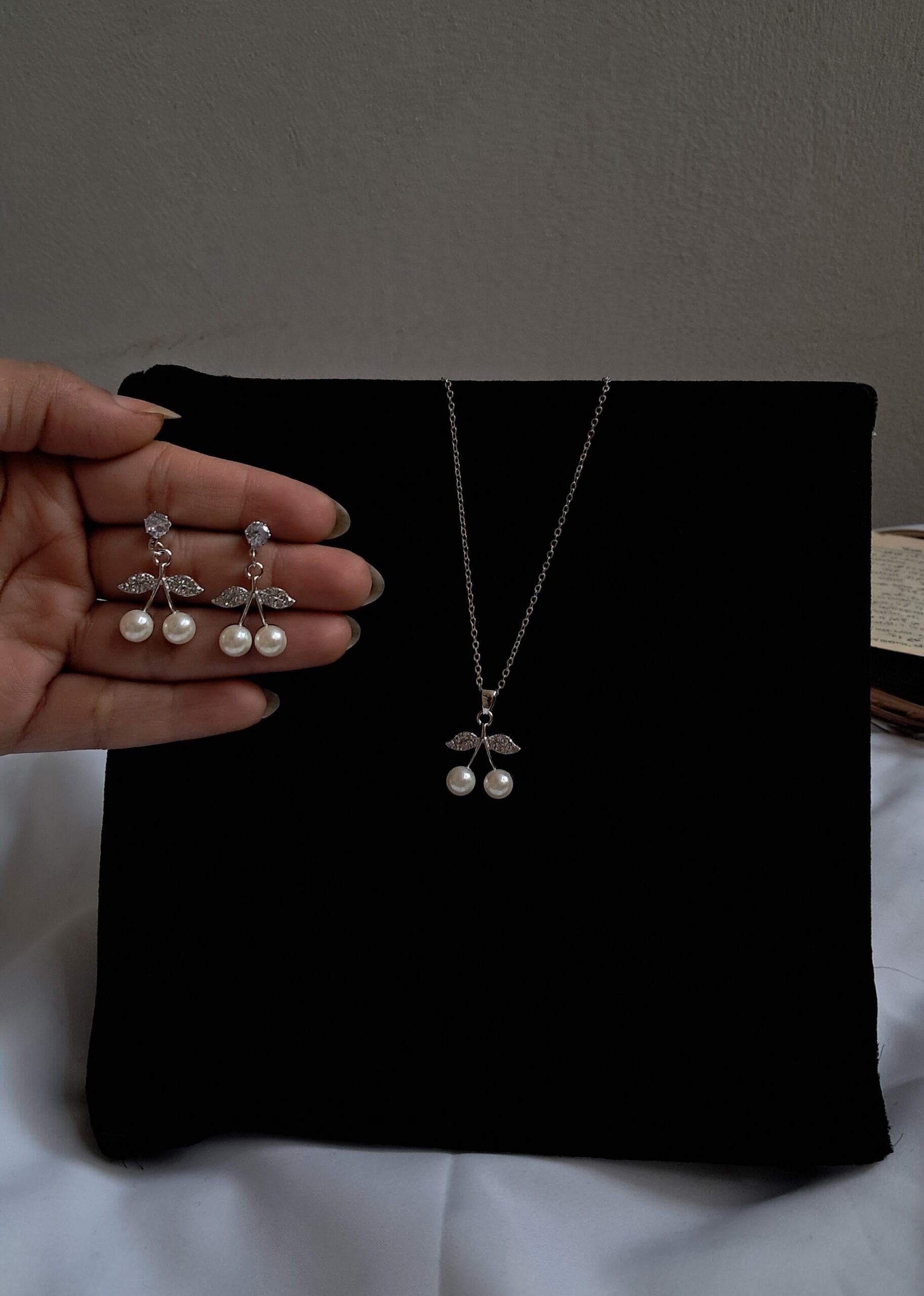 The Elegant Cherry Silver Set is a perfect blend of fun charm and refined elegance. Inspired by delicate cherry motifs, this silver-toned jewelry set brings a fresh, youthful vibe while maintaining a sophisticated finish. The subtle shine and graceful detailing make it ideal for both everyday wear and special occasions.