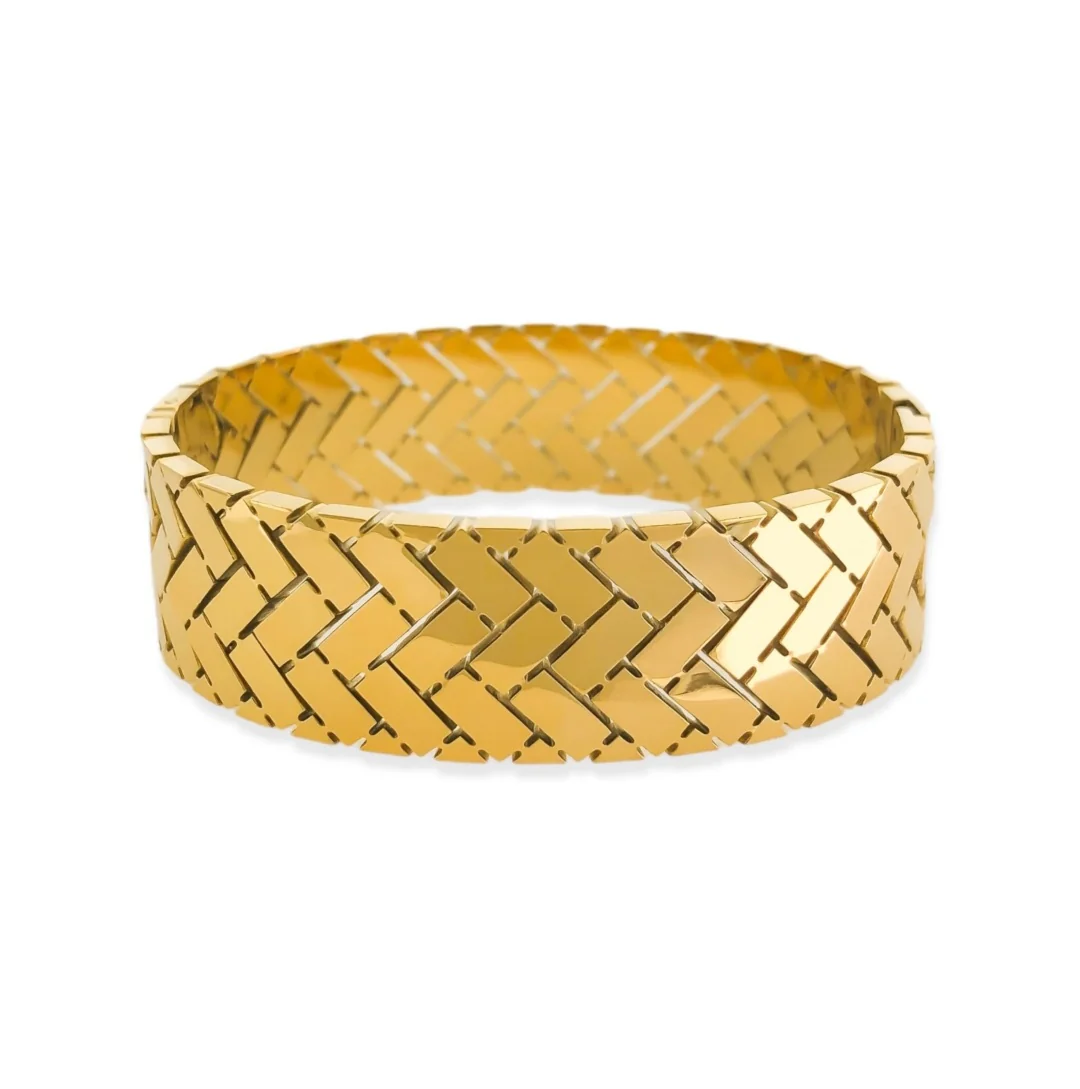 Featuring a striking Greek matrix pattern, this cuff adds a bold and sophisticated accent to any outfit. Crafted with durable stainless steel, it ensures long-lasting shine while remaining gentle on sensitive skin—ideal for daily wear, layering, or gifting.