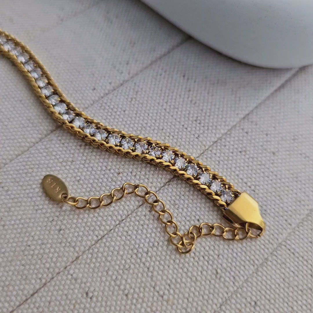 Demanding Bracelet crafted in stainless steel, gold-plated, waterproof, and hypoallergenic — perfect for daily wear with a sparkling white-stone shine.