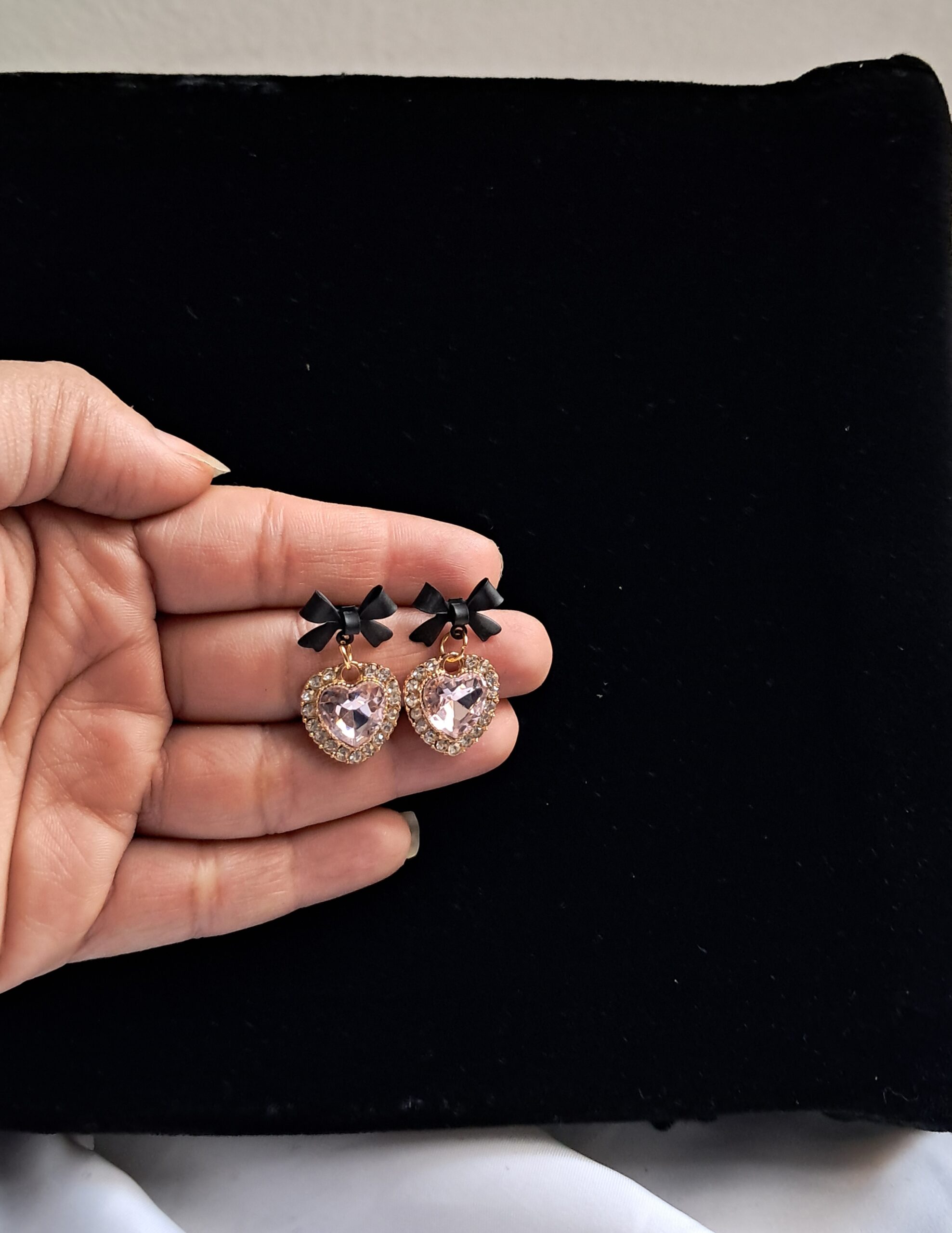Pink Noir Bow Sparkle Heart Earrings🎀✨(Special Edition)