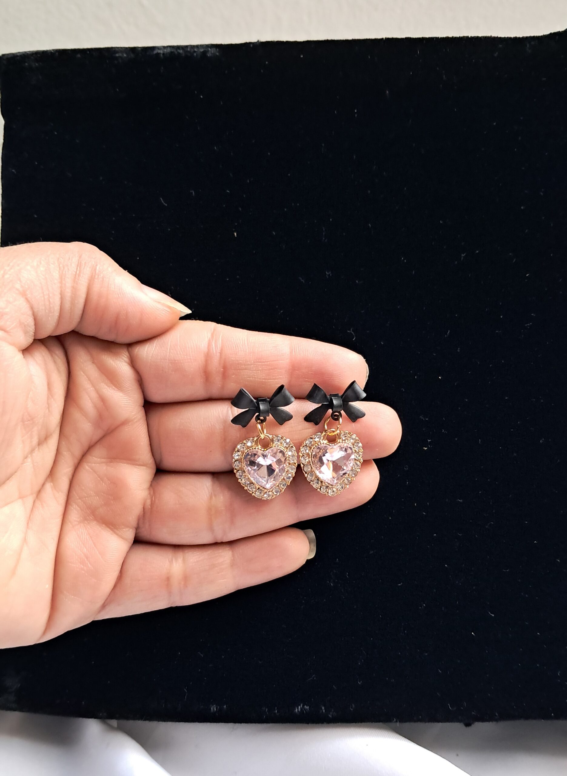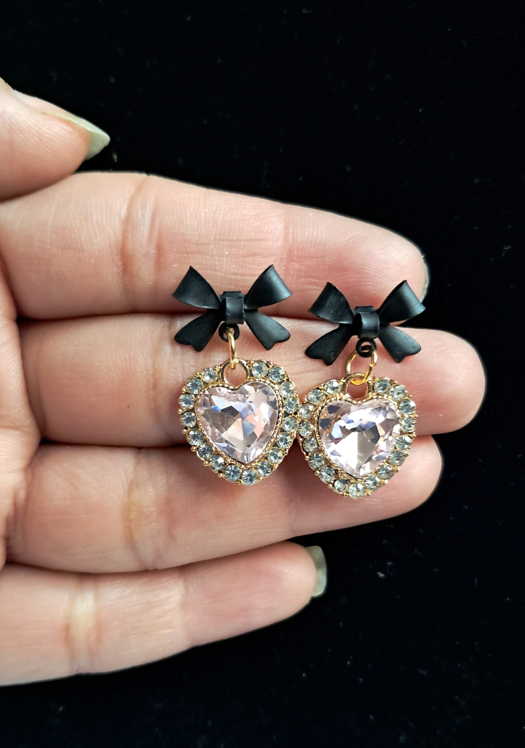 Pink Noir Bow Sparkle Heart Earrings🎀✨ blend soft pink sparkle with bold black bow accents, creating a chic and feminine statement piece✨