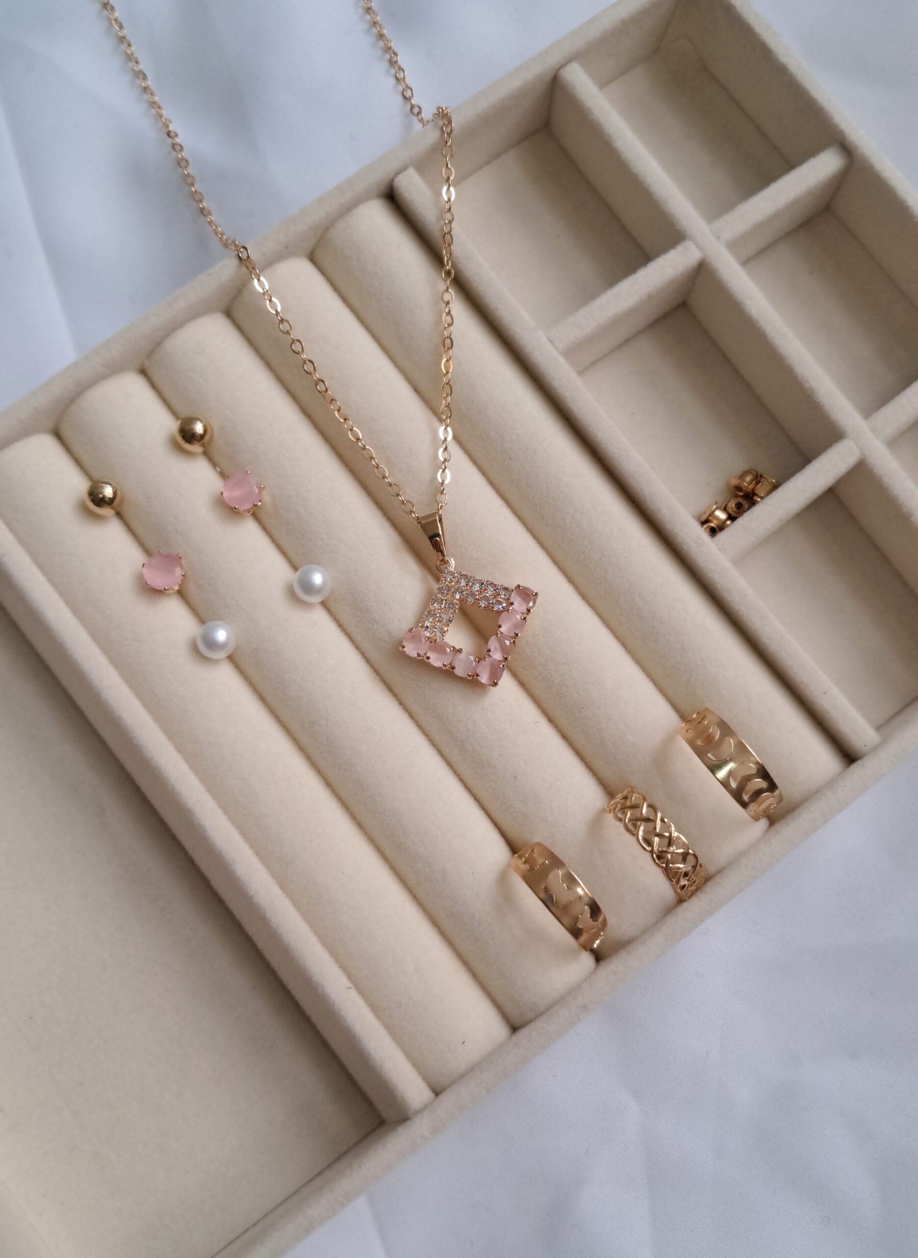 The Pink Rhinestone Square Set is a complete jewelry set designed to add sparkle and elegance to your style. Featuring 1 necklace, 3 matching earrings, and 3 stylish rings, each piece is adorned with dazzling pink rhinestones set in a sleek square design. This set offers a coordinated, glamorous look that’s perfect for parties, casual outings, or festive occasions.