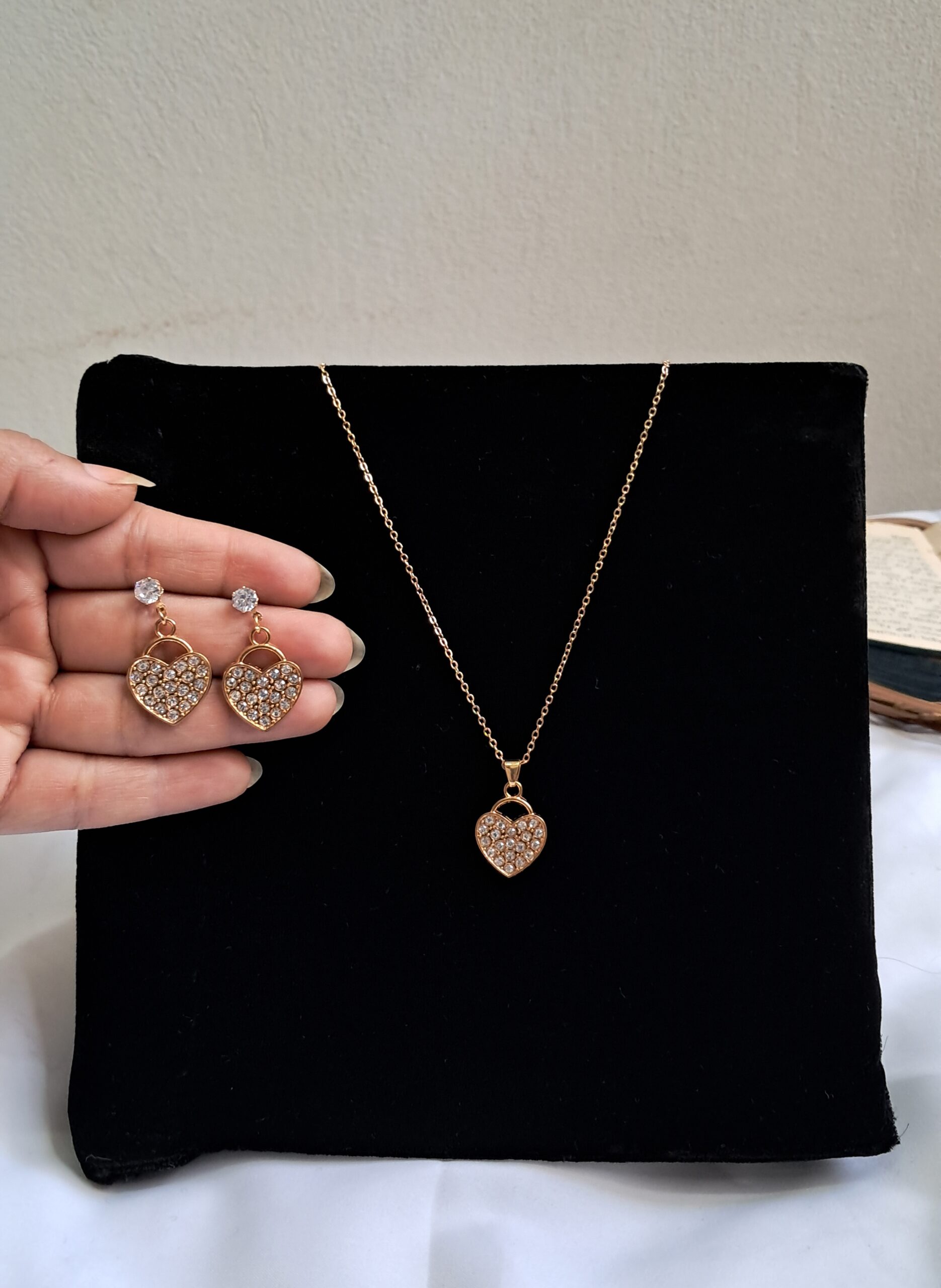 Lightweight and comfortable, this set pairs beautifully with casual outfits, party looks, and festive styling. Whether you’re gifting it to someone special or wearing it as a statement of love, the Sparkling Heart Lock Set adds a graceful glow and feminine charm to your jewelry collection 💎💖✨