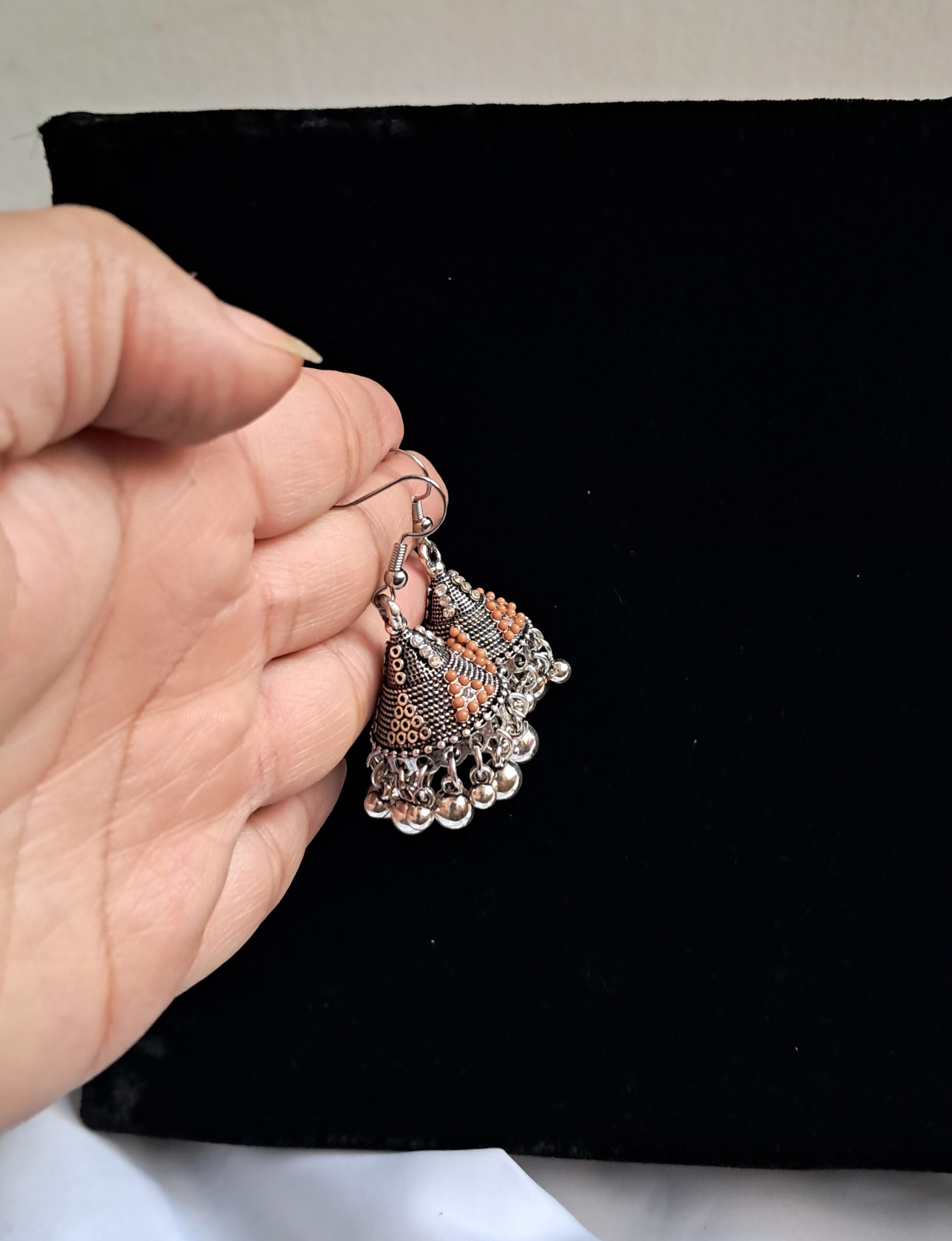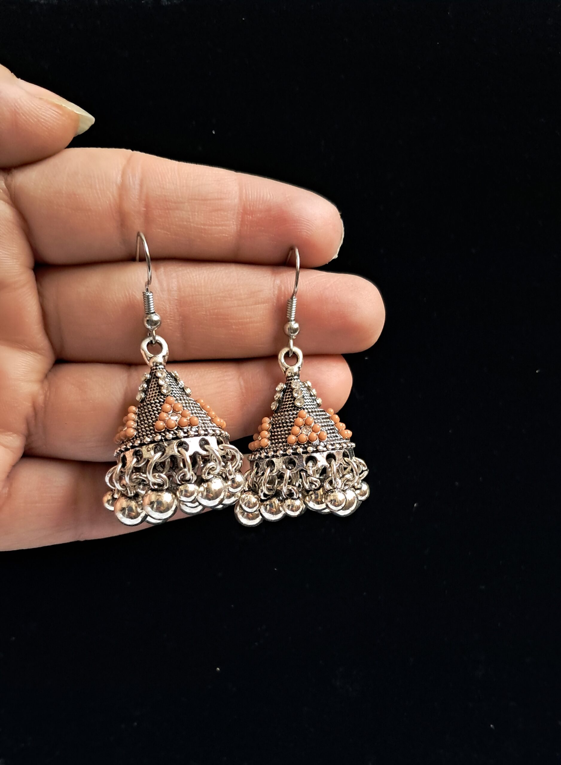 Lightweight and comfortable, they are perfect for weddings, festive occasions, parties, or casual styling. The soft beige tones symbolize grace, sophistication, and subtle charm, making these jhumkies a versatile accessory for any outfit.
