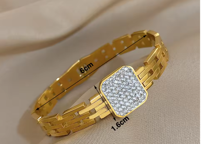 Featuring a stunning princess-cut zircon stone, this cuff adds a graceful and luxurious statement to your look. Crafted with durable stainless steel, it ensures long-lasting shine while remaining gentle on sensitive skin—ideal for daily wear, special occasions, or gifting.
